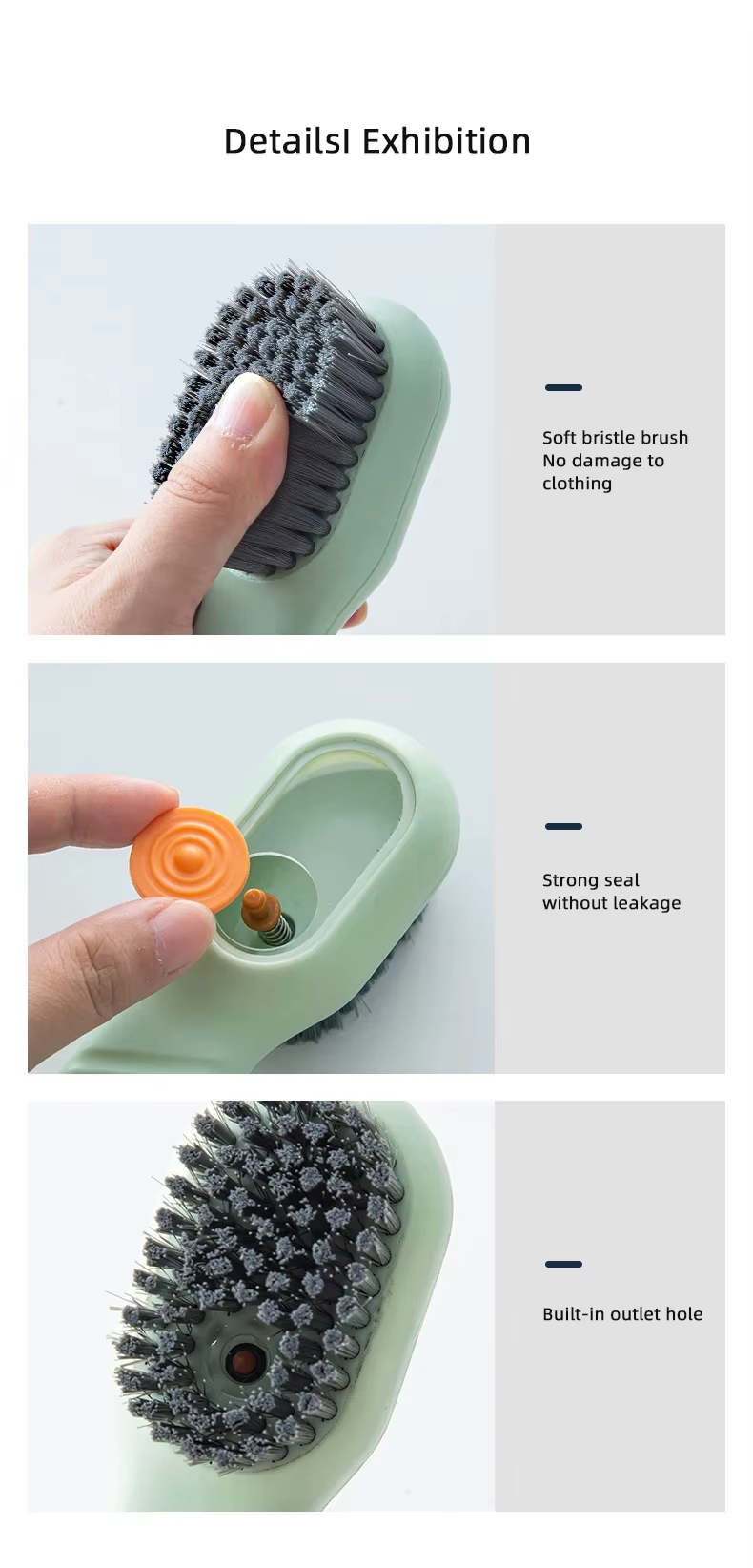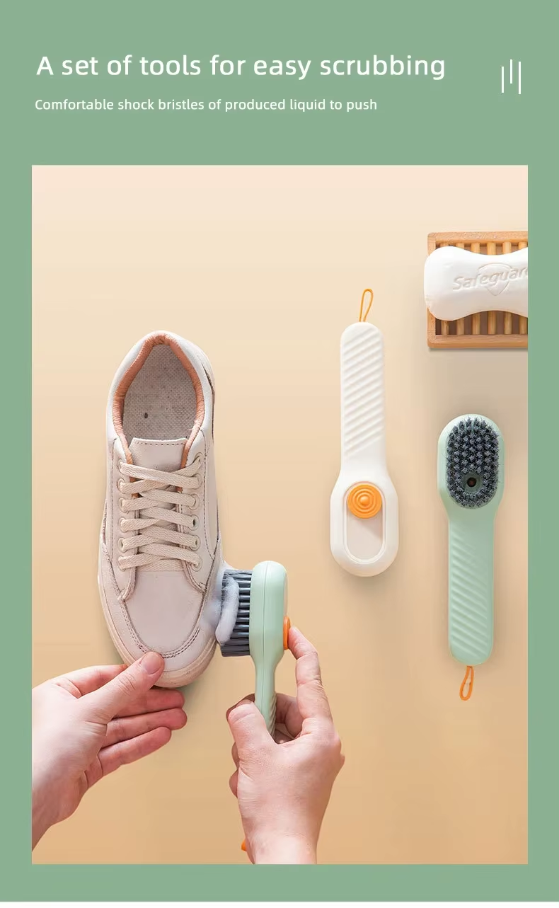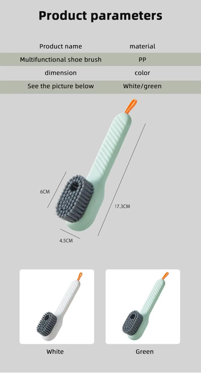 - 【متعددة الأغراض】يمكن لفرشاة الأحذية السائلة تنظيف الأحذية وتنظيف الملابس وتنظيف المطبخ وغسل الأطباق والتنظيف وما إلى ذلك. يستخدم على نطاق واسع في المطابخ وغرف النوم والحمامات وما إلى ذلك.