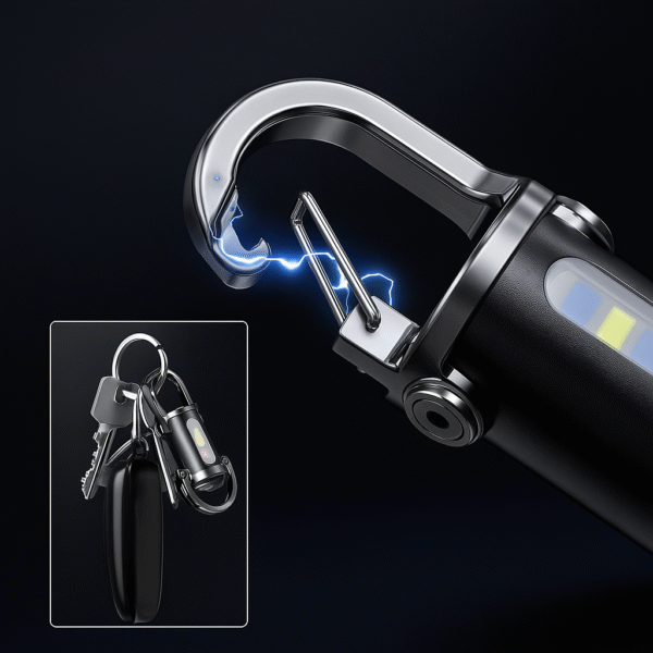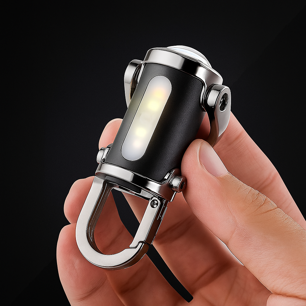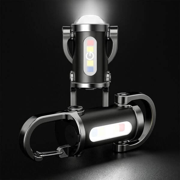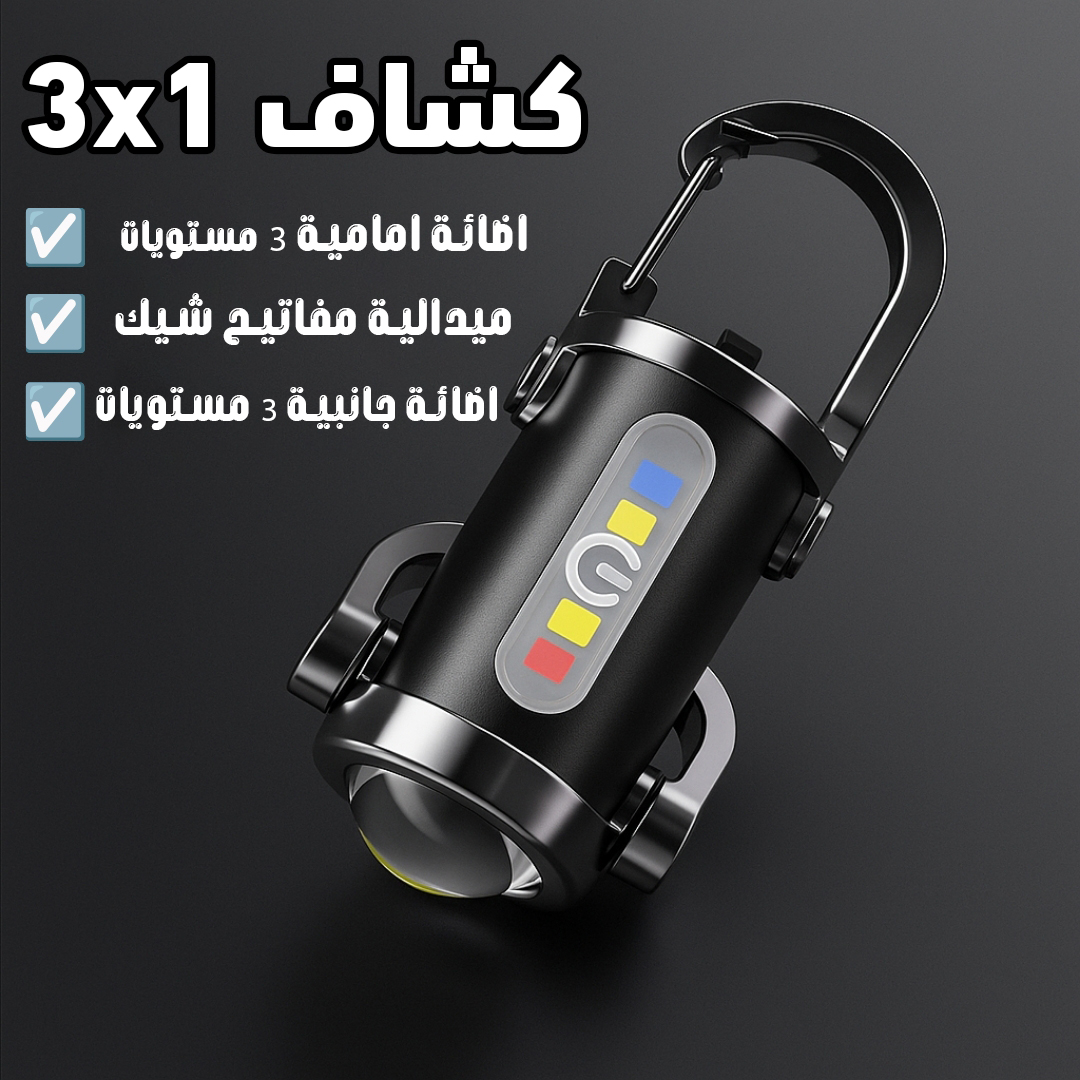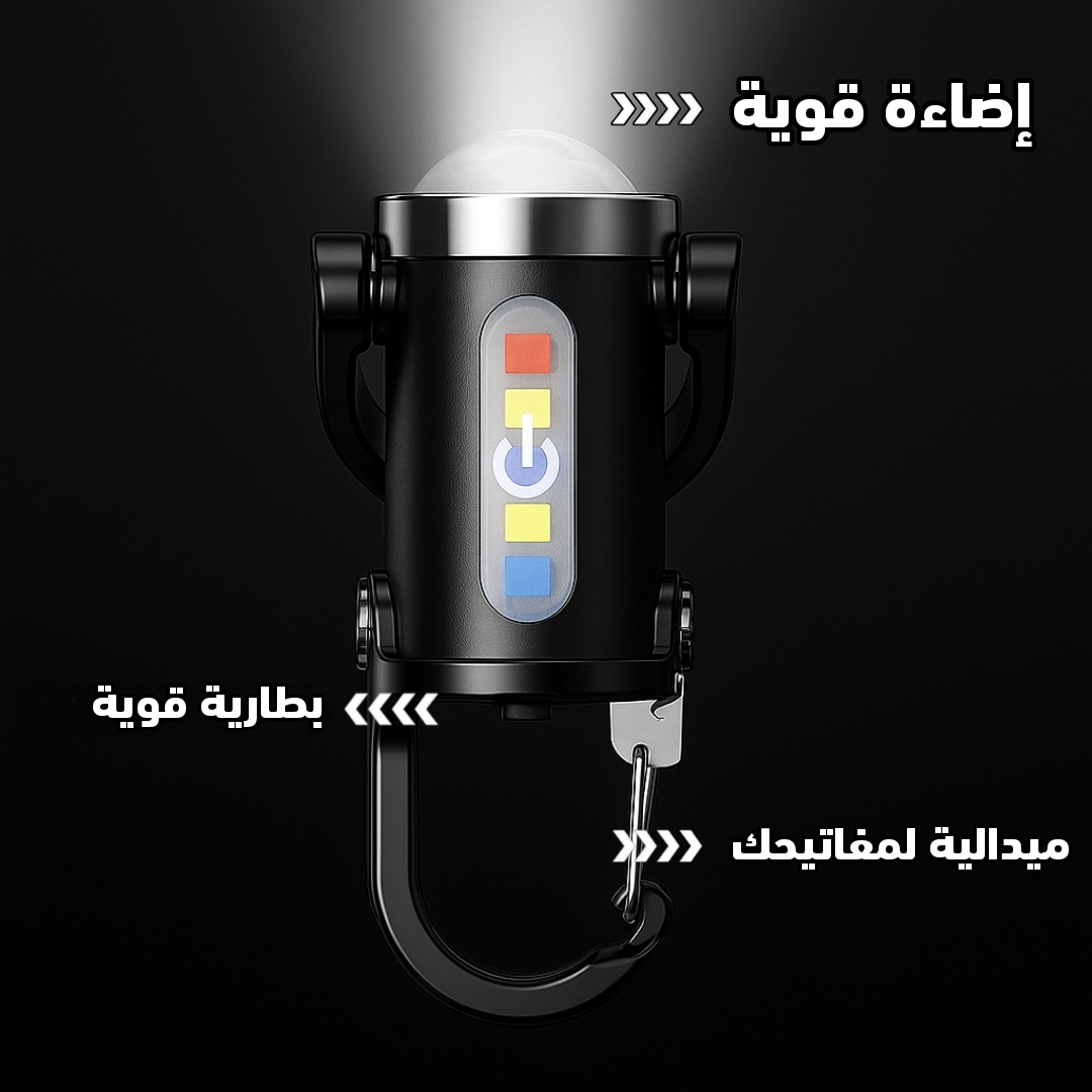 ميدالية وكشاف متعدد الإضاءات كل دا في قطعة واحدة بس، بتقدّملك وظيفتين أساسيتين في كل خروجة كشاف بإضاءات مختلفة ينورلك في أي وقت وميدالية تشيل مفاتيحك وتتعّلق في أي مكان تحبه يعني من الآخر مفتاحك في إيدك ونورك دايمًا معاك