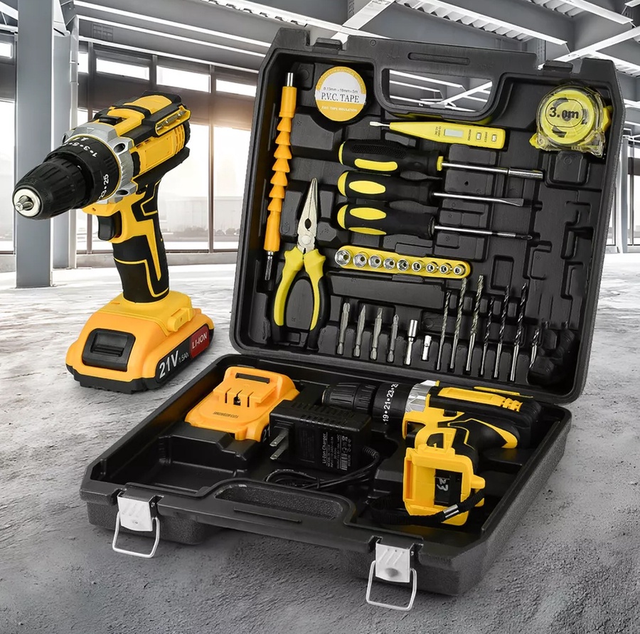 2️⃣ الشنيور كمان معاه بطارية قوية وشاحن علشان متعطلش أبداً لو البطارية فصلت وتقدر تغيرها على طول🔋